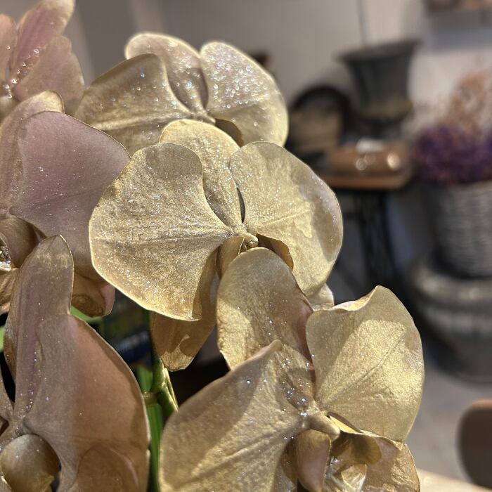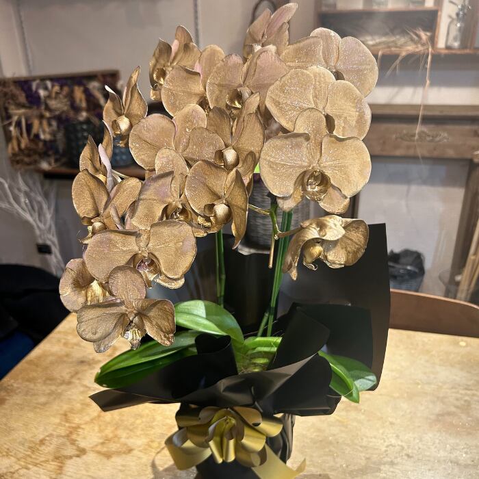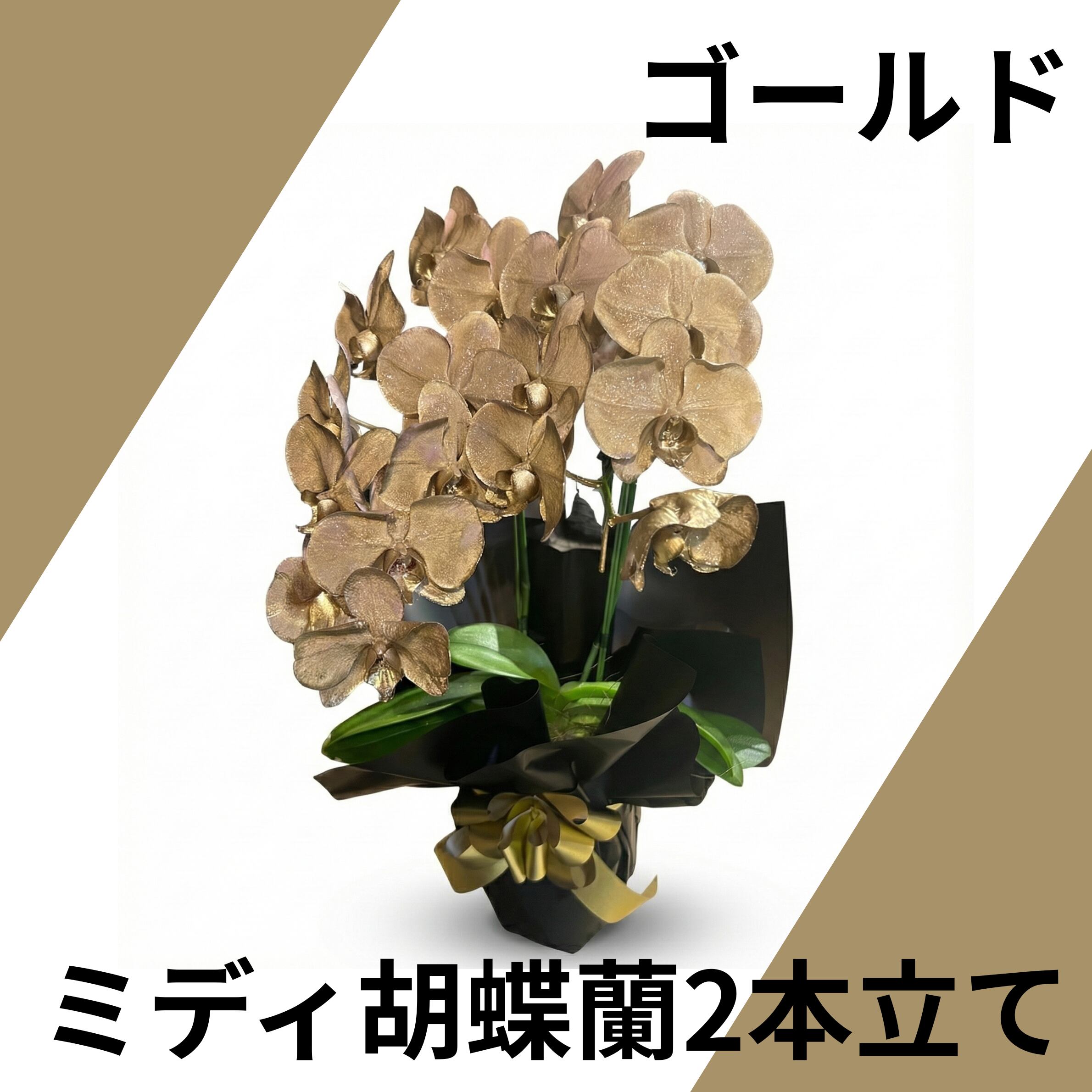 金色の特殊加工を施した2本立のミディ胡蝶蘭。