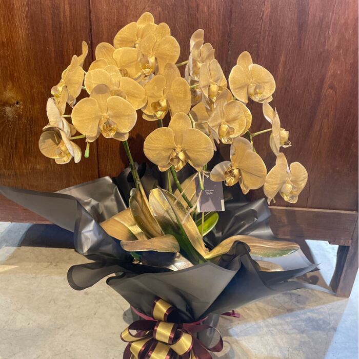 金色の特殊加工を施した3本立のミディ胡蝶蘭。